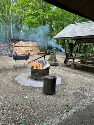 Währenddessen die Turnerfamilie unterwegs ist, bereitet das OK-Team der Turnfahrt die Sitzmöglichkeiten und die Feuerstellen so vor, dass wie jedes Jahr bei der Ankunft aller Teilnehmenden der Hunger und natürlich der Durst sofort gestillt werden können.