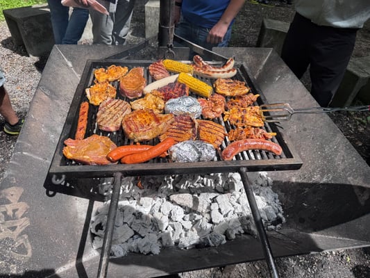 angeheizt, die Tische sowie Bänke aufgestellt, und das gemeinsame Mittagessen konnte