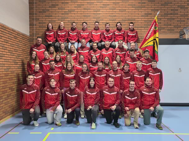 Anlässlich des bevorstehenden Eidgenössischen Turnfest 2025 präsentiert sich der Turnverein in einem neuen Vereinstrainer. Darin sehen wir nicht nur sehr schick aus, sondern bekennen uns auch zu einer neuen Farbe: Rot!